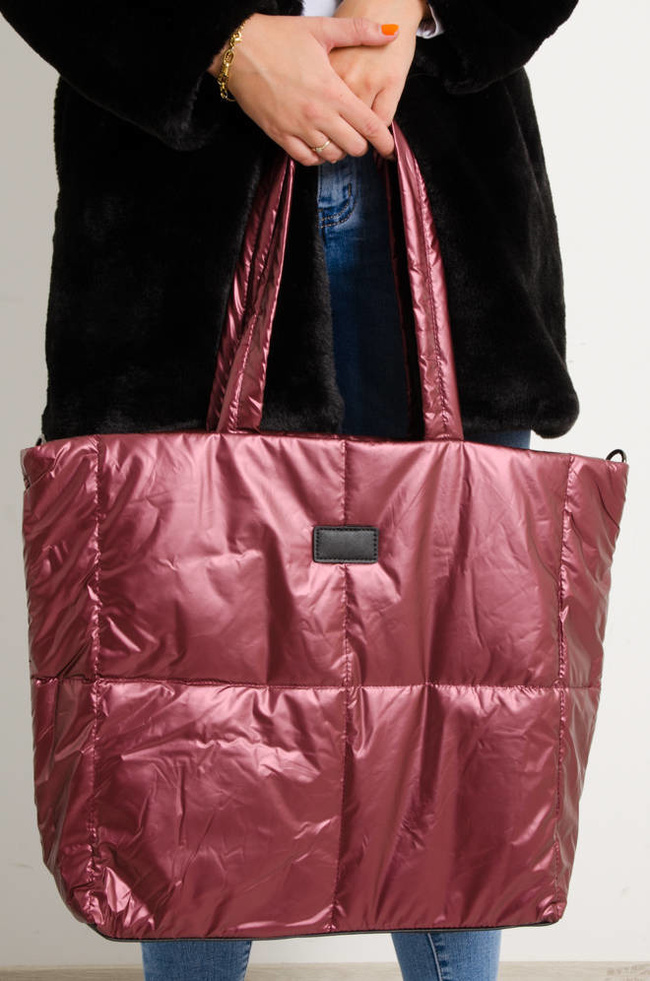 DUŻA PIKOWANA TORBA TYPU SHOPPER- BORDOWA
