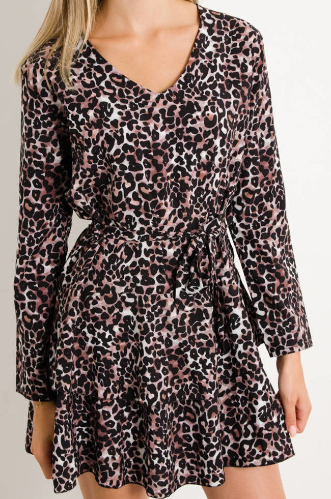 SUKIENKA W PANTERKĘ WIĄZANA W TALII