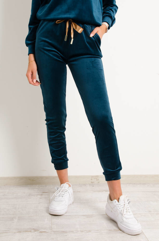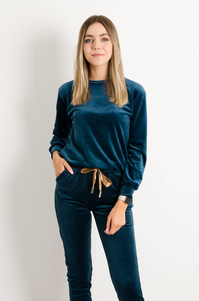 KOMPLET DRESOWY WELUROWY Z OZDOBNĄ NASZYWKĄ- CIEMNY TURKUS