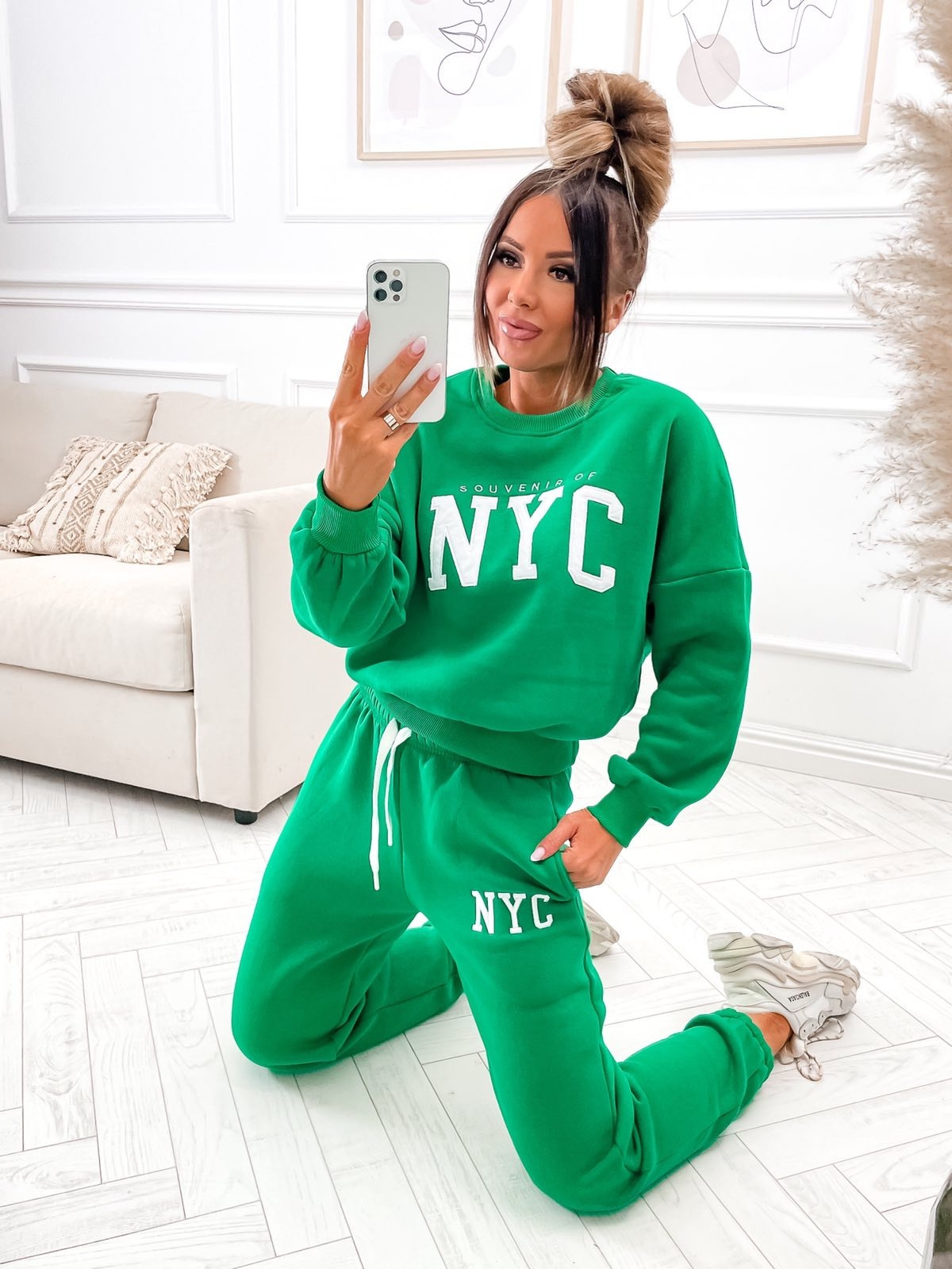 KOMPLET DRESOWY Z OZDOBNĄ NASZYWKĄ- ZIELONY