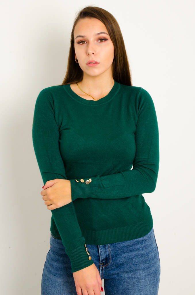 SWETER Z OZDOBNYMI GUZIKAMI- ZIELONY