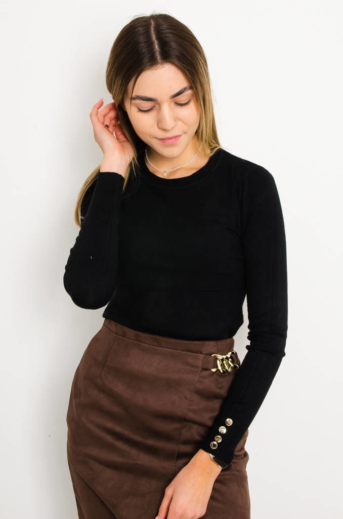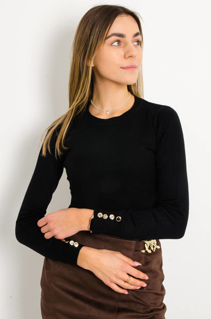 SWETER Z OZDOBNYMI GUZIKAMI- CZARNY