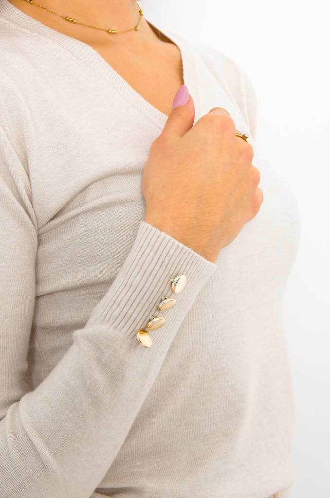 SWETER Z OZDOBNYMI GUZIKAMI Z DEKOLTEM W SEREK- BEŻOWY