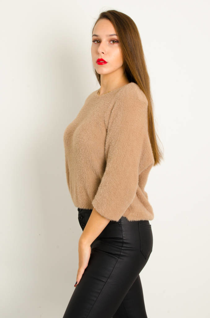 FUTRZANY SWETER NIETOPERZ- BRĄZOWY
