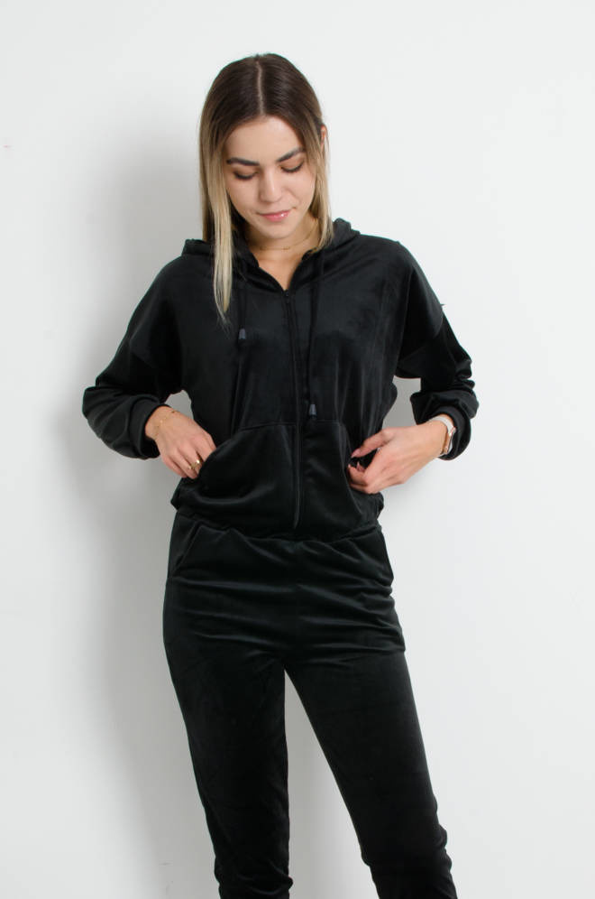 WELUROWY KOMPLET DRESOWY ROZPINANY Z KAPTUREM- CZARNY