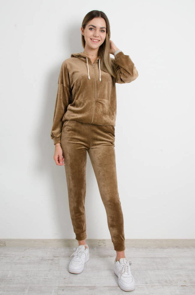 WELUROWY KOMPLET DRESOWY ROZPINANY Z KAPTUREM- BRĄZOWY