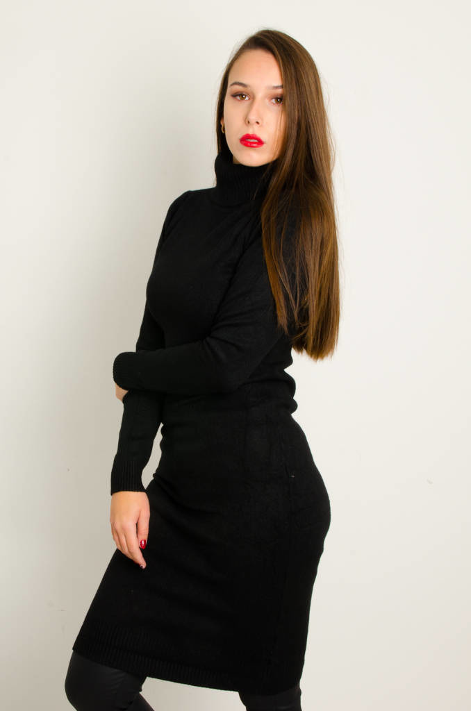 SUKIENKA MIDI SWETERKOWA Z GOLFEM- CZARNA