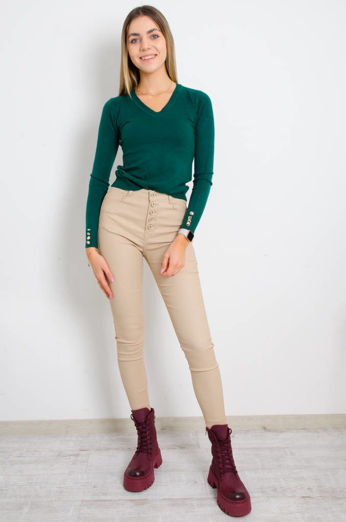SPODNIE WOSKOWANE Z WYSOKIM STANEM I GUZIKAMI- BEŻOWE