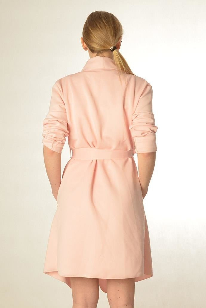 Elegancka narzutka w kolorze różowym, pasek w talii sprawi, że dopasujesz ją do każdej figury.