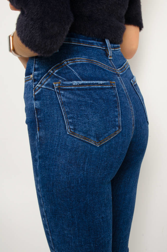 NIEBIESKIE SPODNIE JEANSOWE PUSH UP Z PRZETARCIAMI- BARDZO WYSOKI STAN