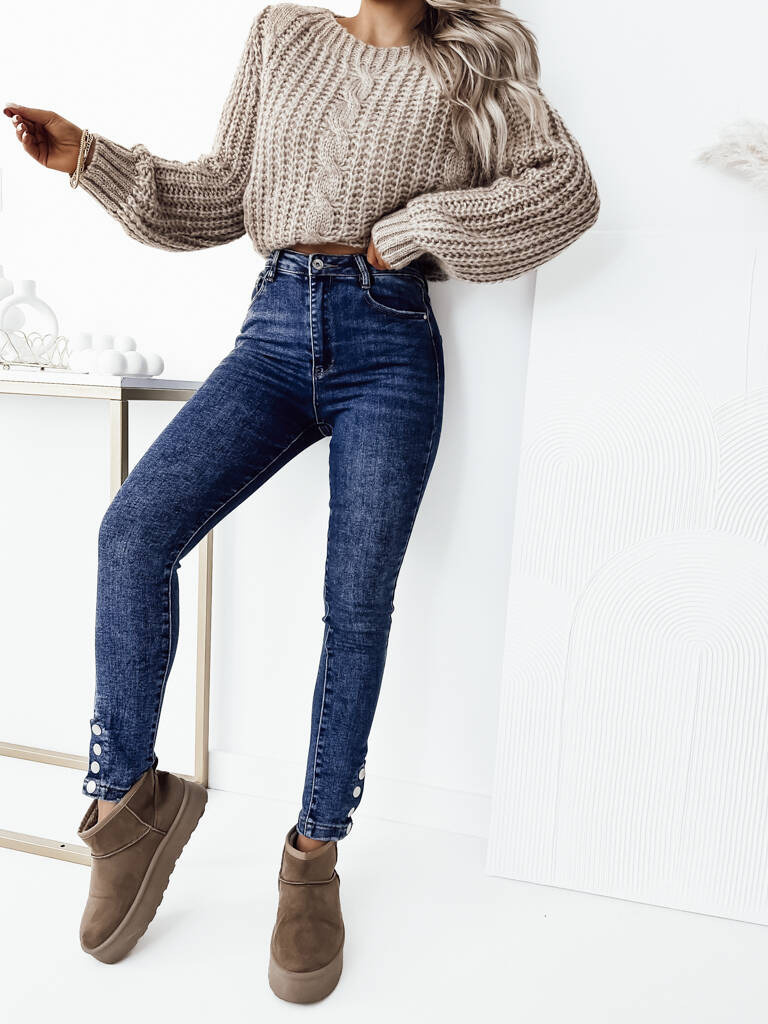 CIEMNE JEANSY Z GUZIKAMI PRZY NOGAWCE- WYSOKI STAN