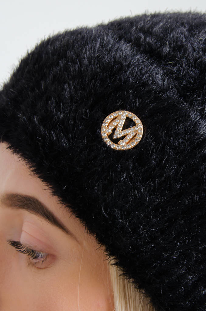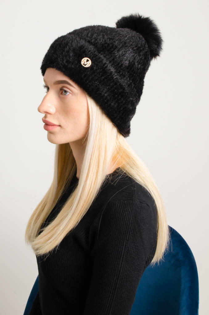 FUTRZANA CZAPKA Z POMPONEM- CZARNA