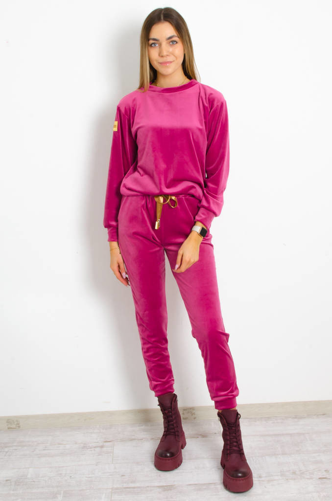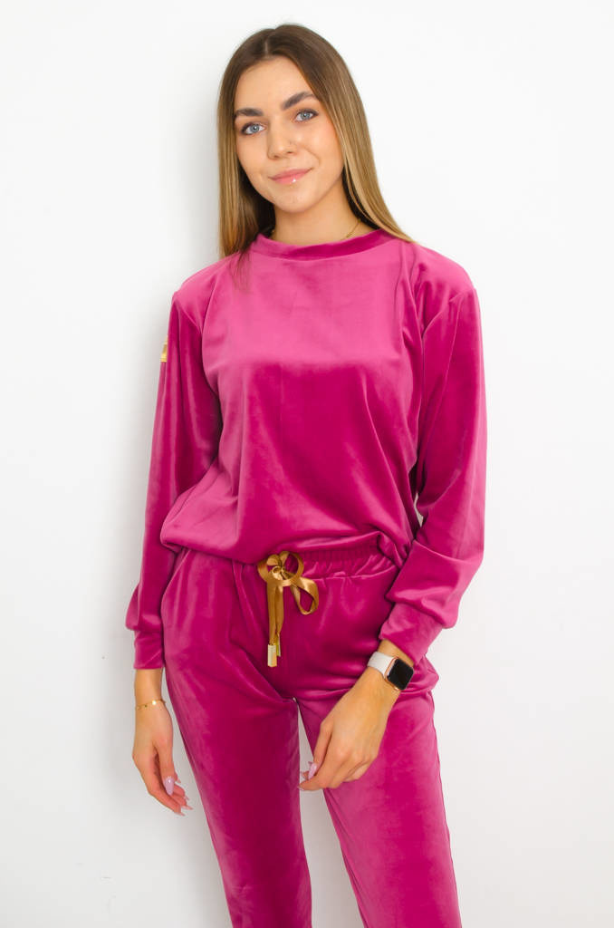 KOMPLET DRESOWY WELUROWY Z OZDOBNĄ NASZYWKĄ- RÓŻOWY