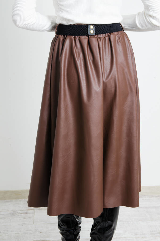 BRĄZOWA ROZKLOSZOWANA SPÓDNICA Z IMITACJI SKÓRY+ PASEK