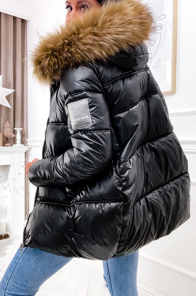 CZARNA KURTKA PIKOWANA Z NASZYWKĄ NA RĘKAWIE