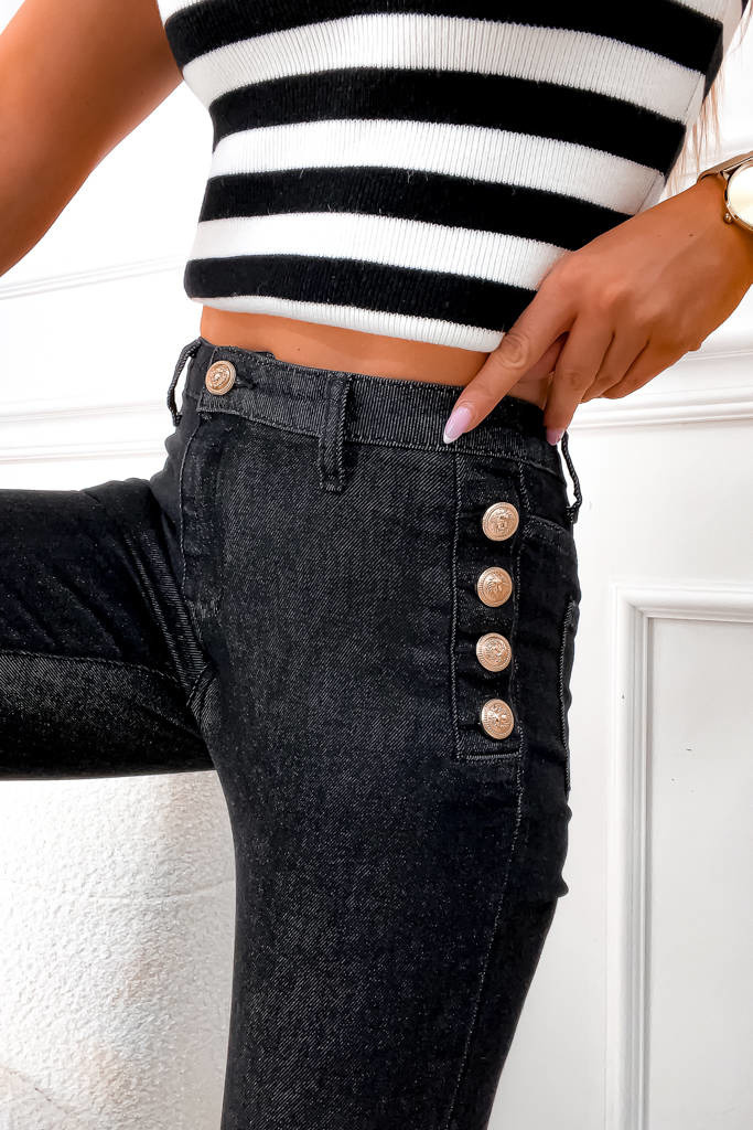 CZARNE SPODNIE Z OZDOBNYMI GUZIKAMI-WYSOKI STAN