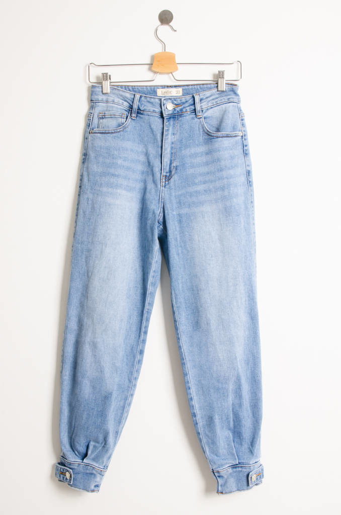 SPODNIE JEANSOWE Z WYSOKIM STANEM - ZAPIĘCIE NA DOLE NOGAWKI