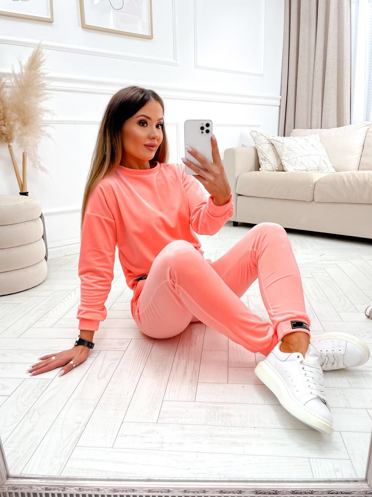 WELUROWY KOMPLET DRESOWY Z NASZYWKĄ- BRZOSKWINIOWY