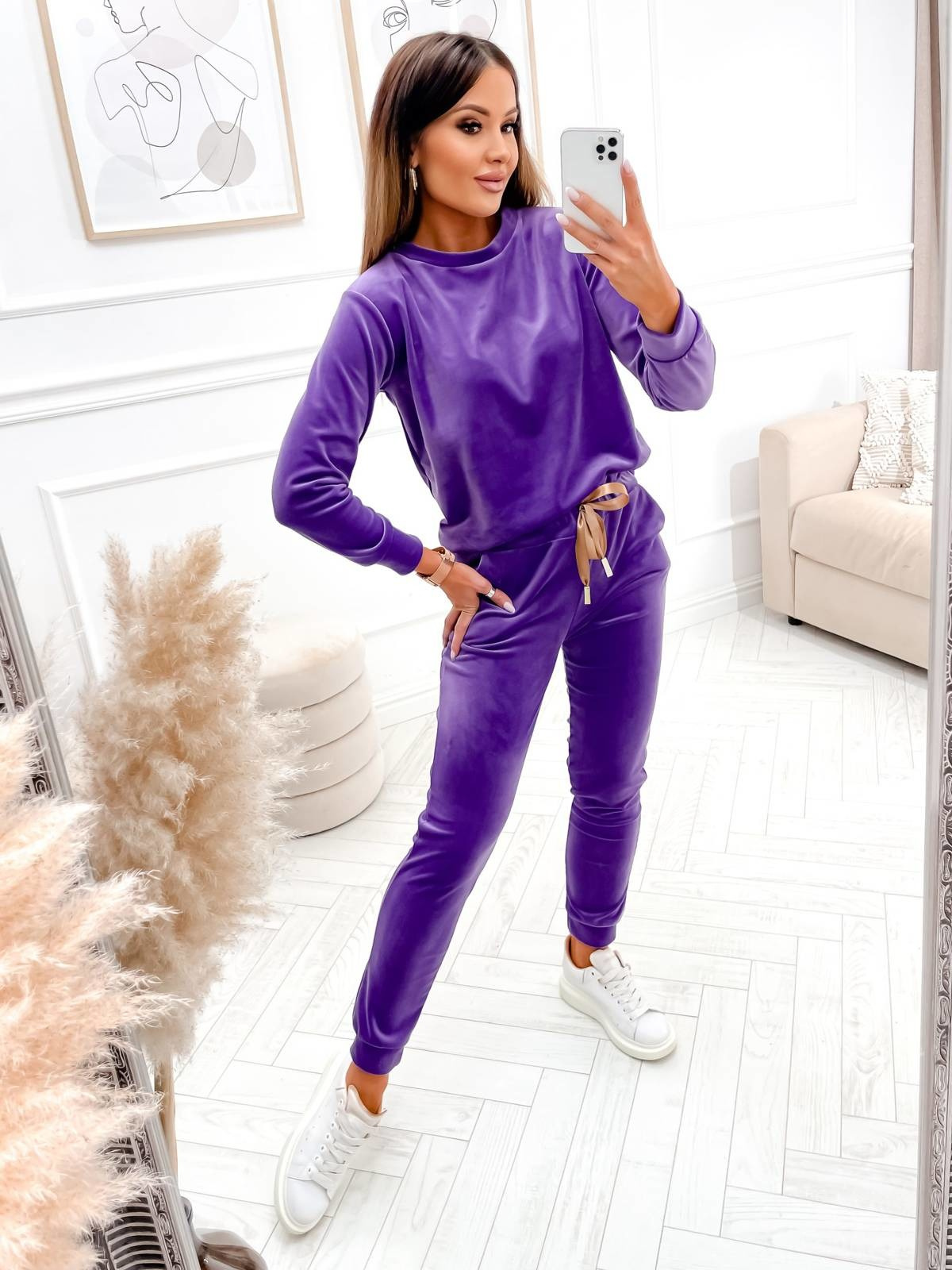 KOMPLET DRESOWY WELUROWY Z OZDOBNĄ NASZYWKĄ- ŚLIWKOWY