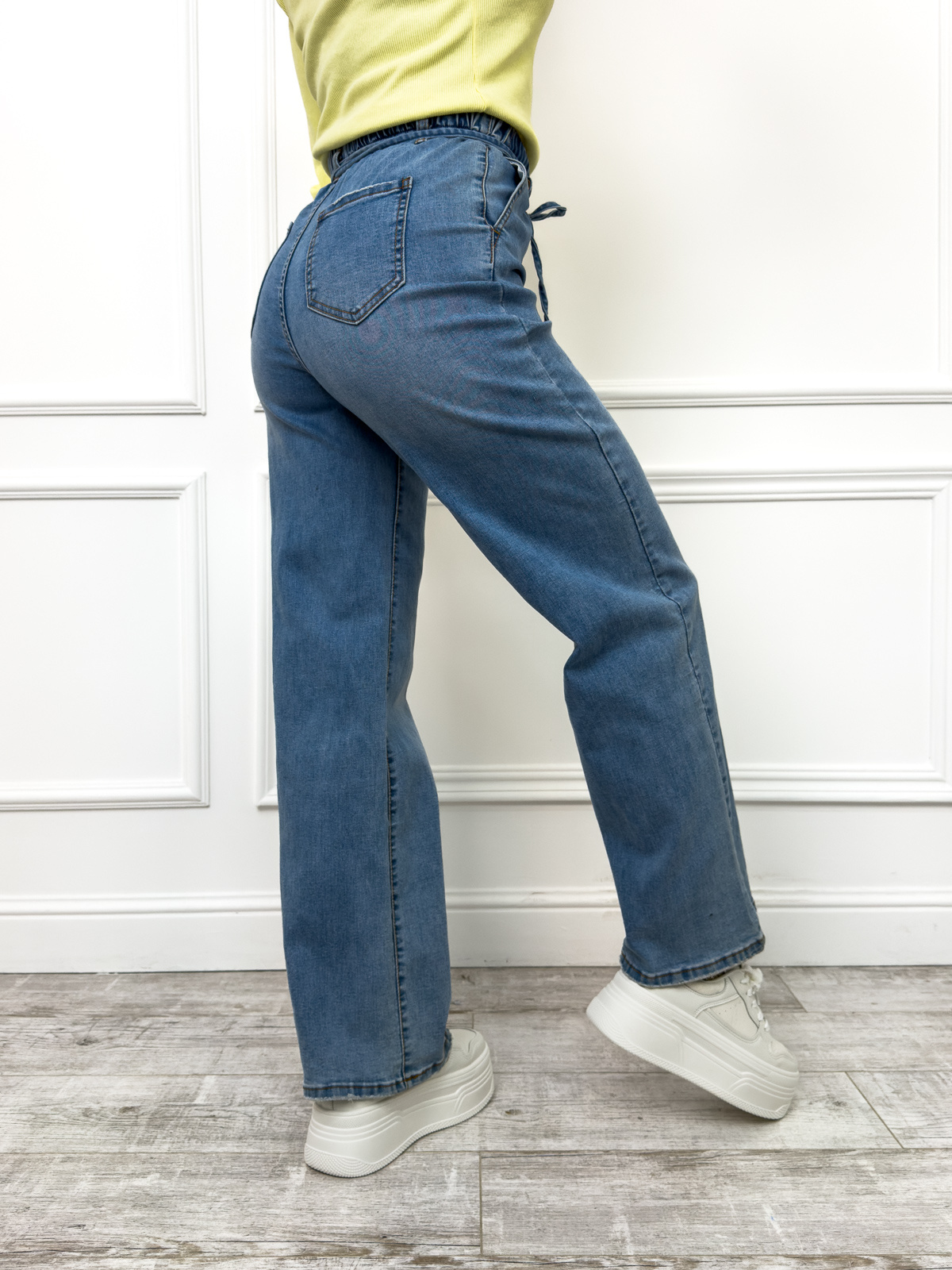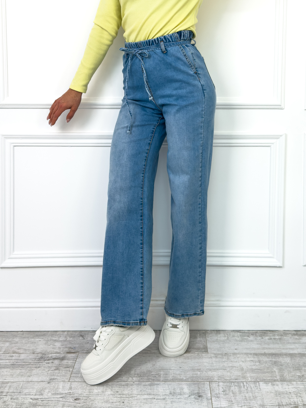 SPODNIE JEANSOWE Z SZEROKIMI NOGAWKAMI I WIĄZANIEM W PASIE