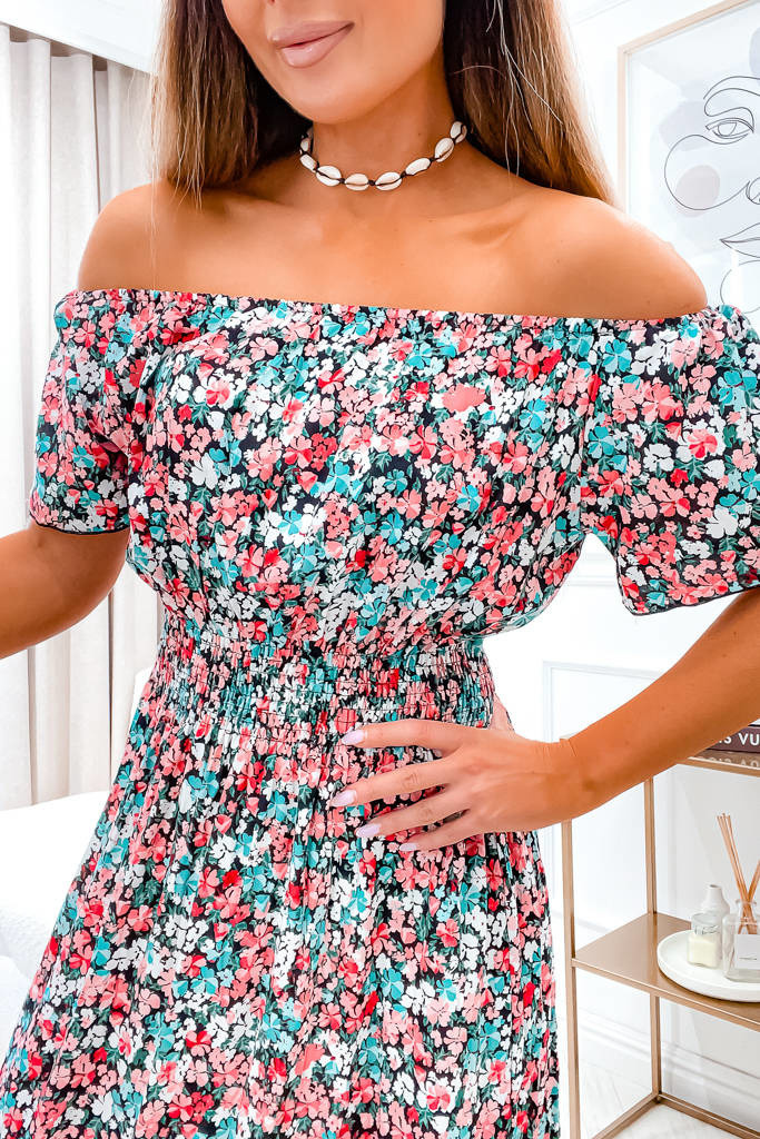 SUKIENKA HISZPANKA W KWIATY Z GUMĄ W PASIE- CZERWONA