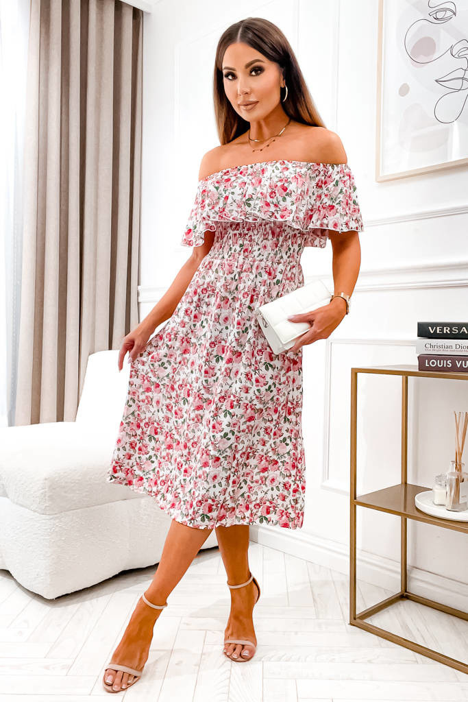 SUKIENKA HISZPANKA MIDI W KWIATOWY WZÓR- BIAŁA