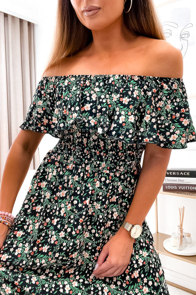 SUKIENKA MIDI W KWIATY HISZPANKA- CZARNA