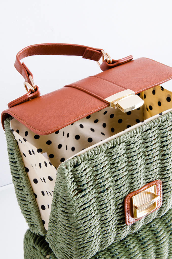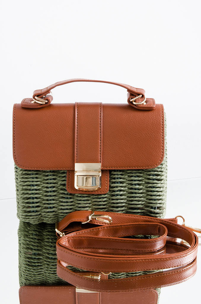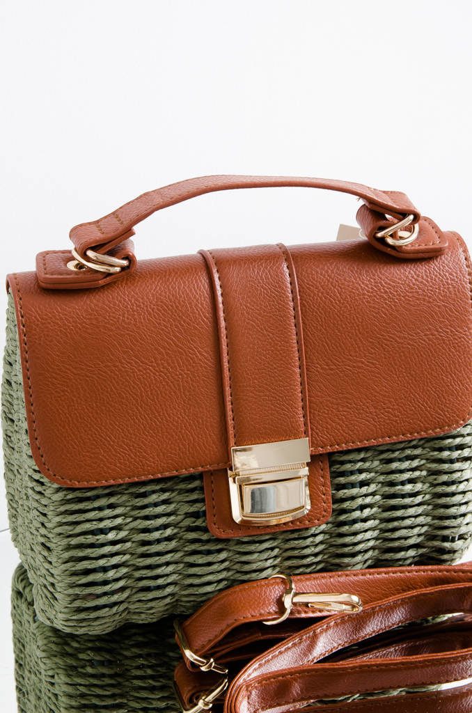 TOREBKA LISTONOSZKA PLECIONA Z KWADRATOWĄ KLAMRĄ I PASKIEM- ZIELONA