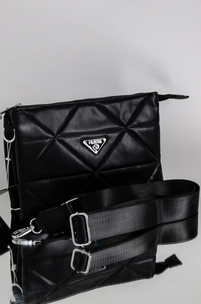 TOREBKA PIKOWANA Z MATERIAŁOWYM PASKIEM- CZARNA