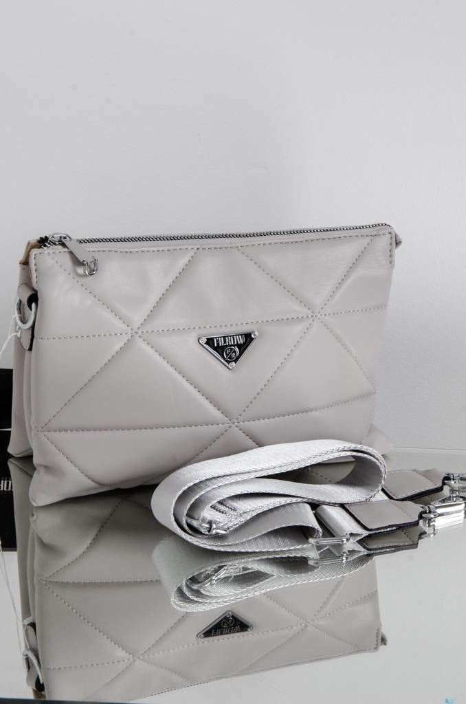 TOREBKA PIKOWANA Z MATERIAŁOWYM PASKIEM- SZARA