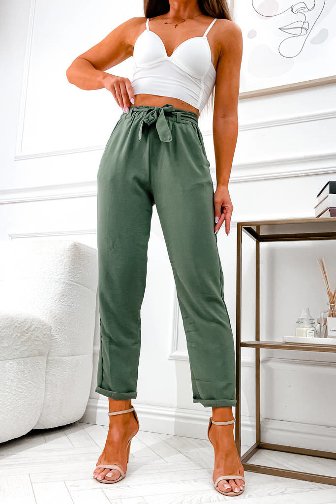 SPODNIE PAPERBAG Z WIĄZANIEM W PASIE- ZIELONE