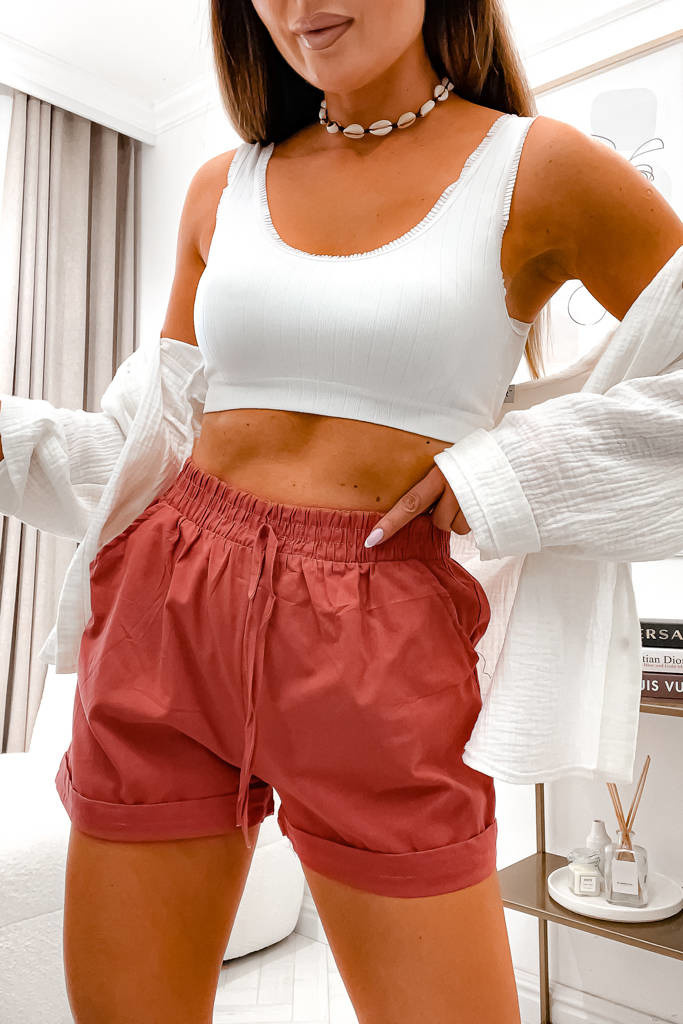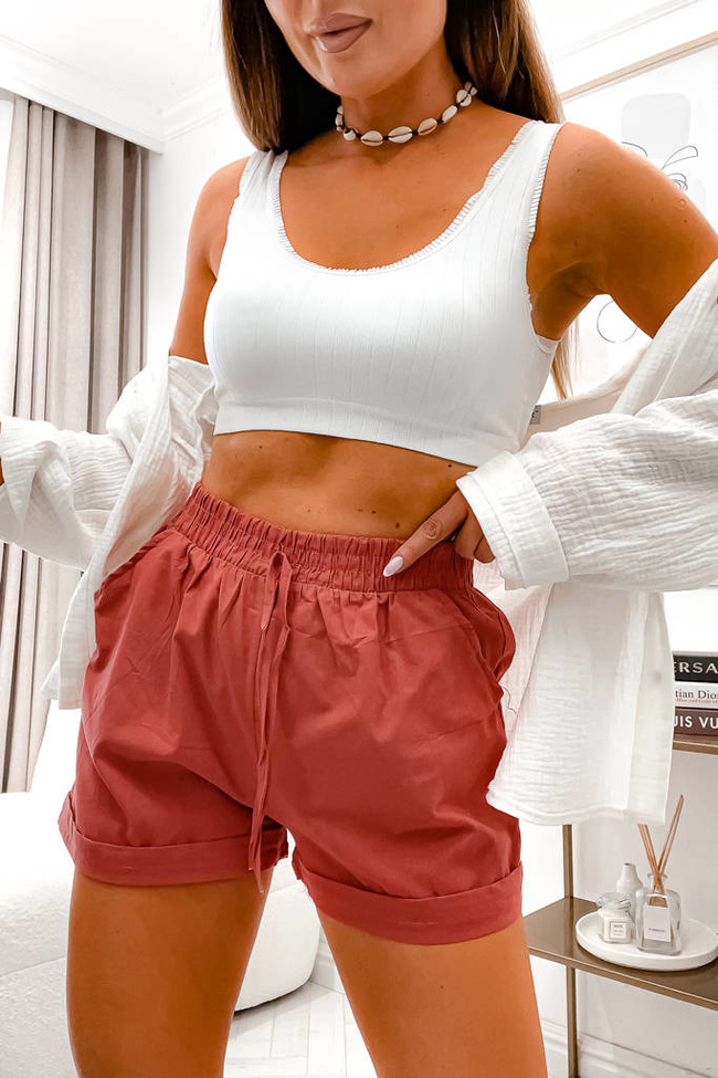 SZORTY Z KIESZENIAMI WIAZANE W PASIE- CZERWONE