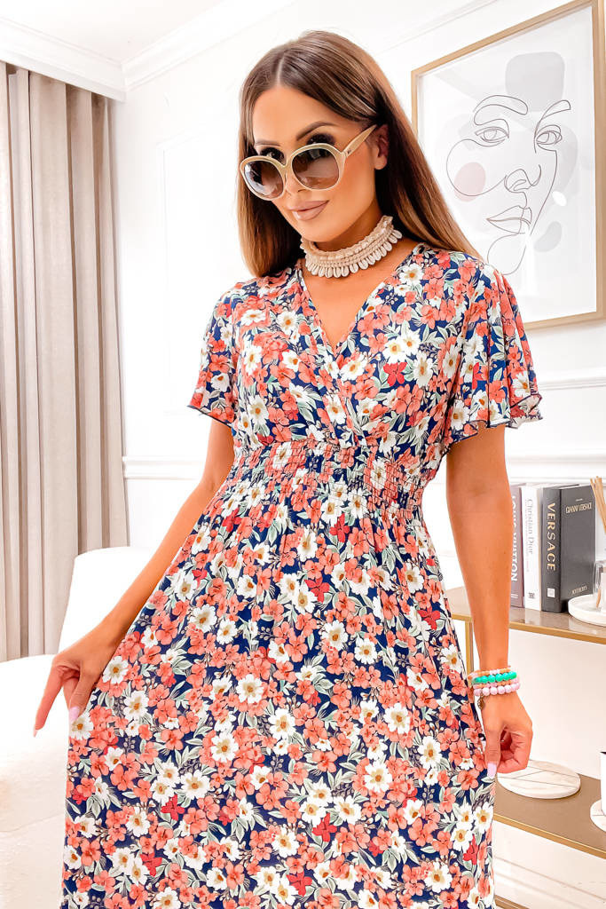 SUKIENKA MIDI Z KOPERTOWYM DEKOLTEM I GUMĄ W PASIE- GRANATOWA