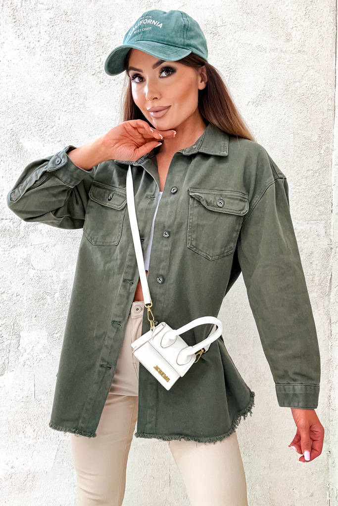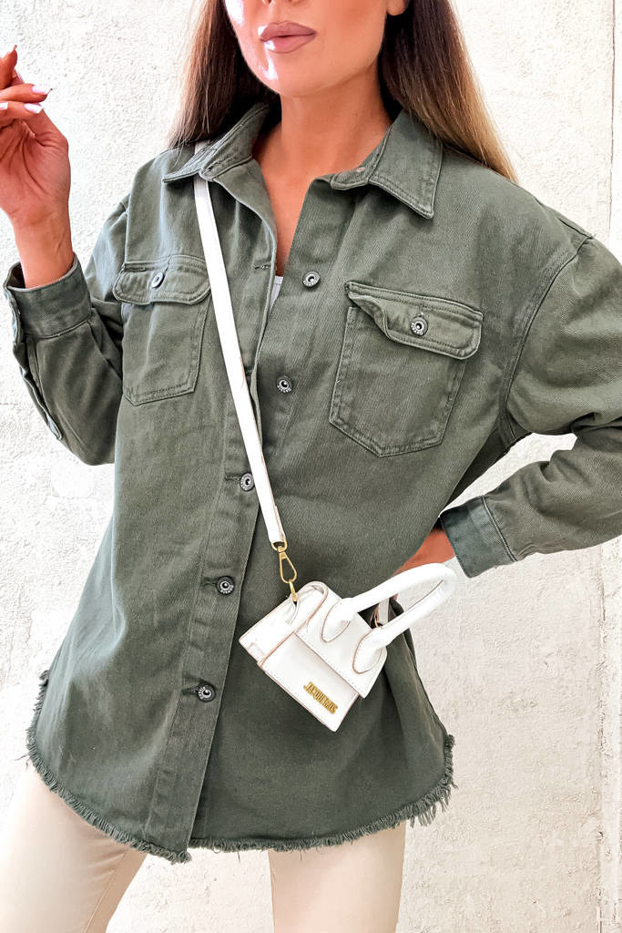 DŁUGA KOSZULA JENASOWA Z GUZIKAMI- ZIELONA
