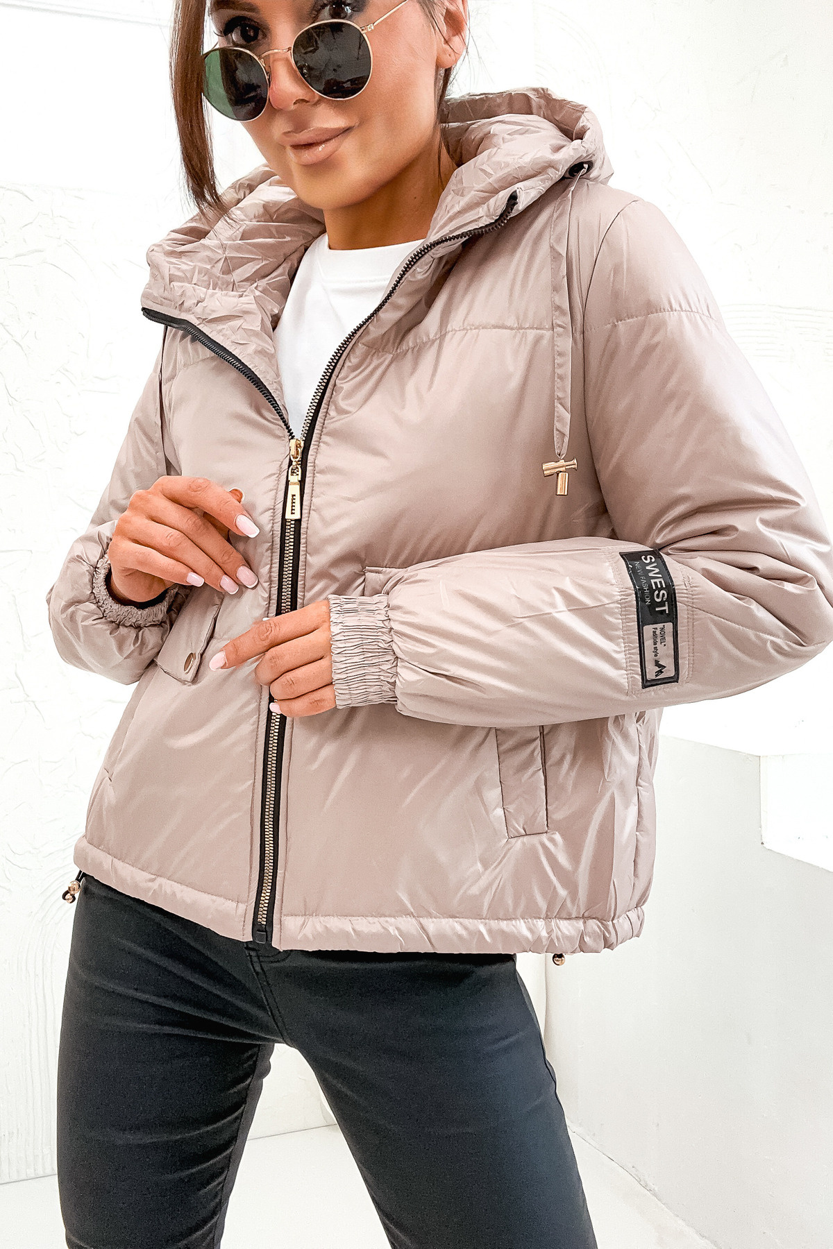 KURTKA ASYMETRYCZNA ZE ZŁOTYMI ELEMENTAMI- BEŻOWA