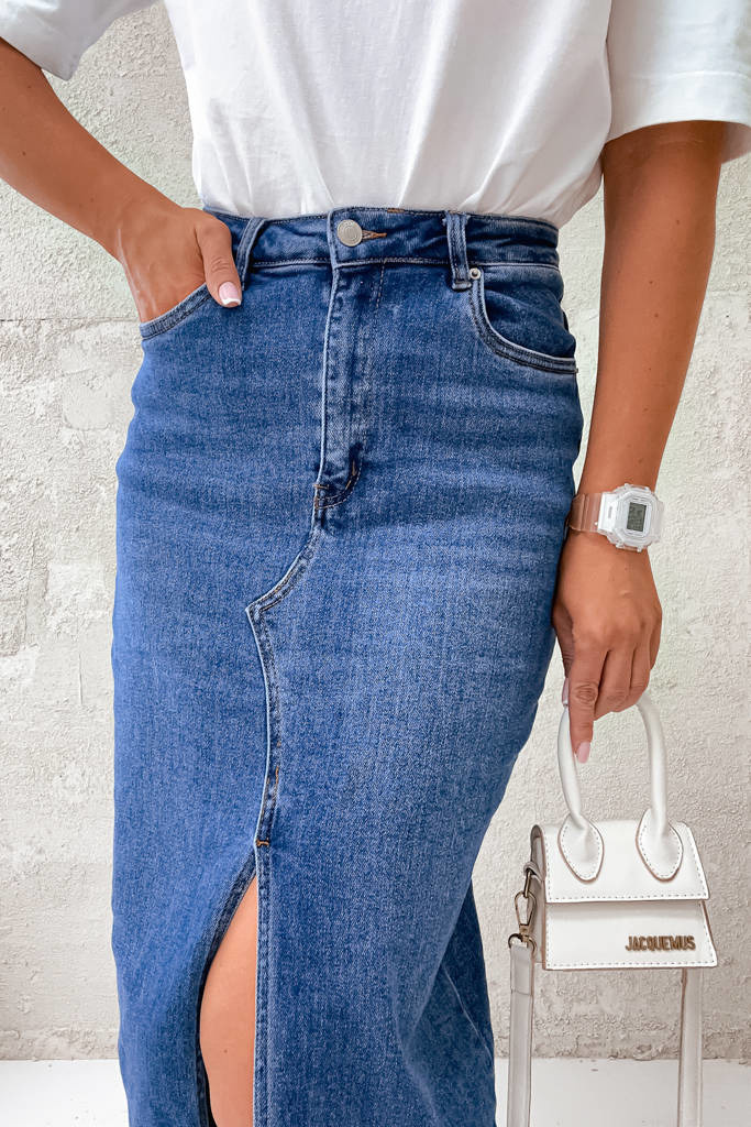 JEANSOWA SPÓDNICA MIDI Z ROZCIĘCIEM