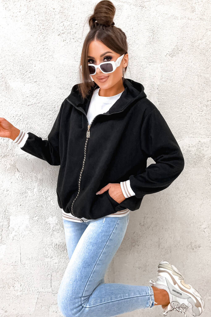 BLUZA ZAMSZOWA Z KONTRASTOWYMI ŚCIĄGACZAMI- CZARNA