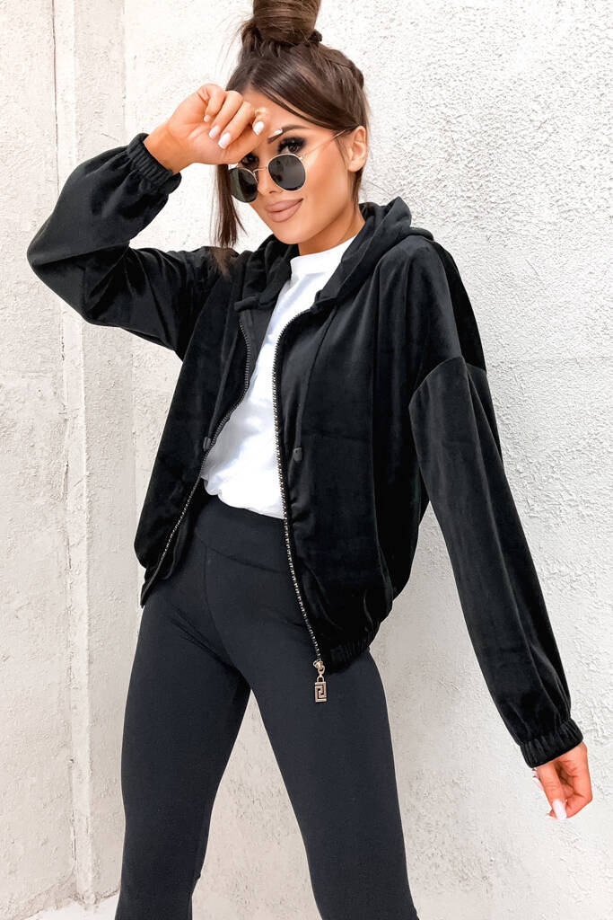 BLUZA ZAMSZOWA Z OZDOBNYM ZAMKIEM- CZARNA