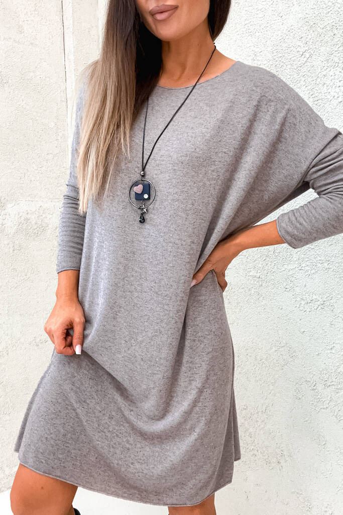 CIEMNO SZARA SUKIENKA MIDI OVERSIZE+ NASZYJNIK
