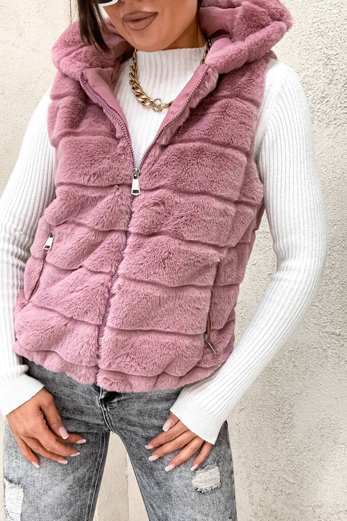 CIEMNO RÓŻOWA FUTRZANA KAMIZELKA - BEZRĘKAWNIK