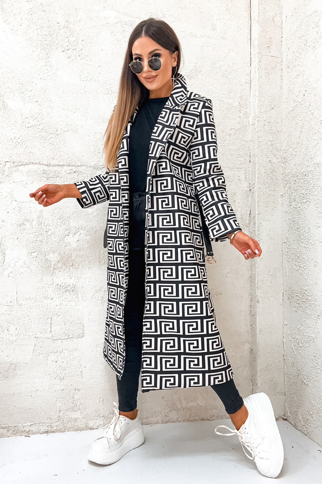 PŁASZCZ WZÓR FENDI WIĄZANY W PASIE