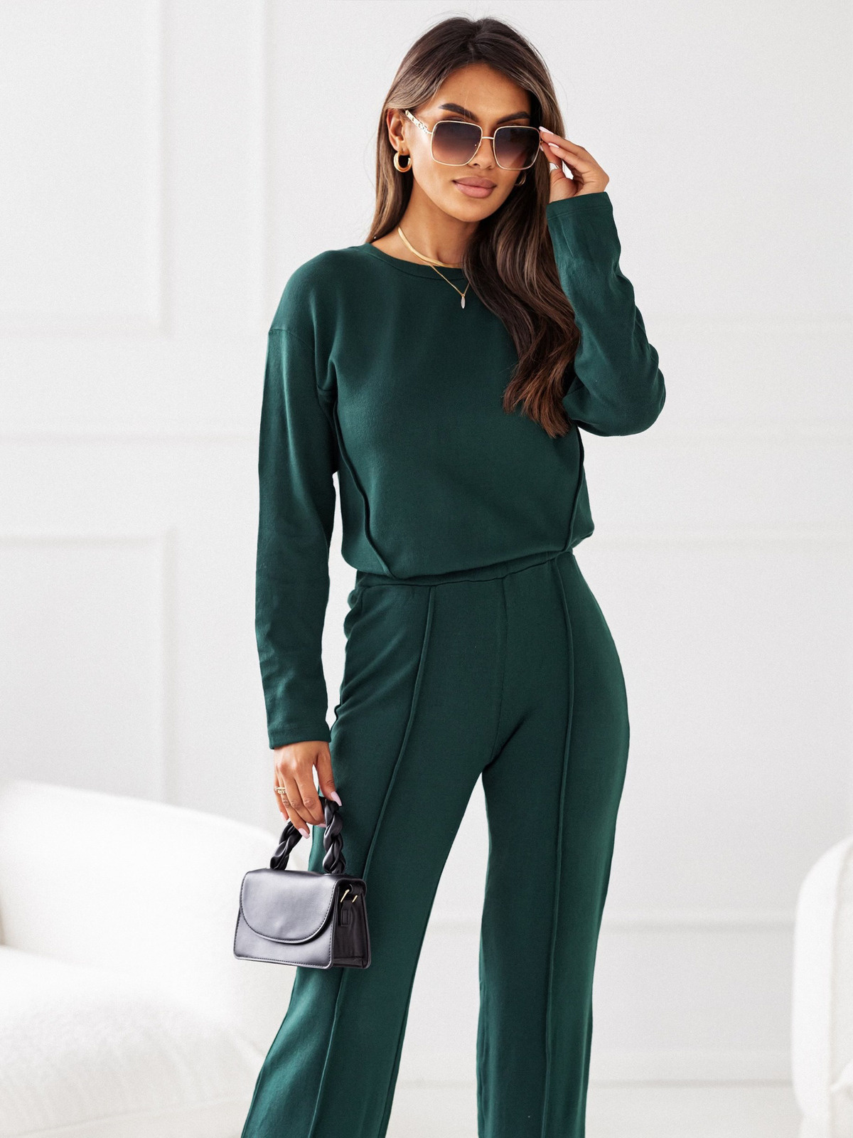 KOMPLET BLUZKA+ SPODNIE Z PRZESZYCIAMI- BUTELKOWA ZIELEŃ