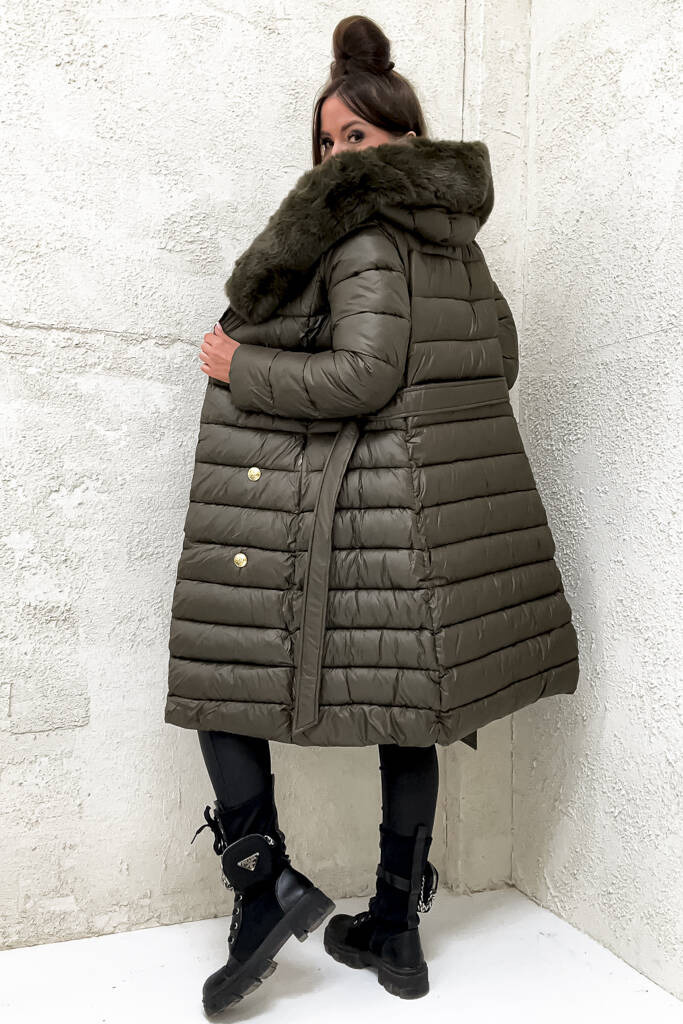 PIKOWANY PŁASZCZ ZE ZŁOTYMI GUZIKAMI I PASKIEM- CIEMNA ZIELEŃ