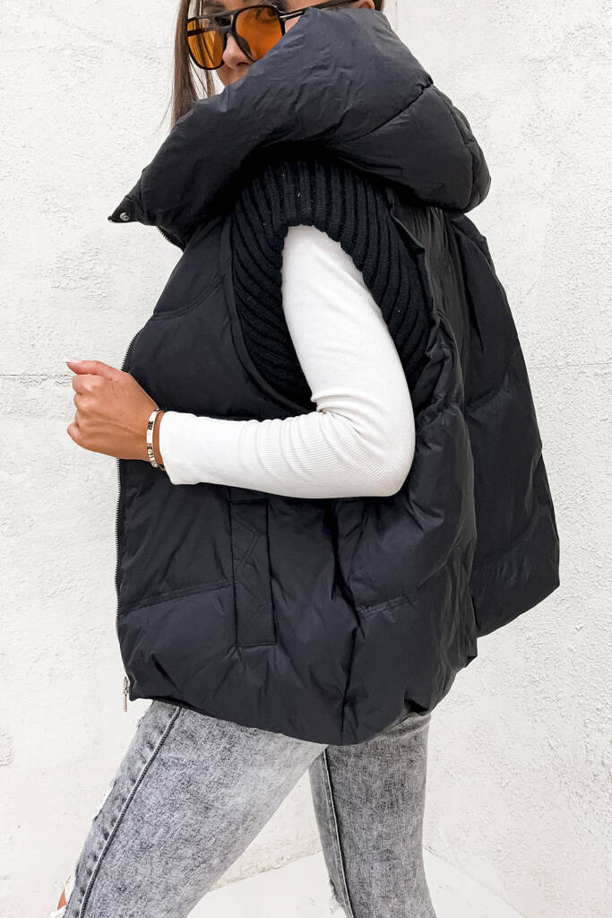 KAMIZELKA PIKOWANA Z KAPTUREM I SWETERKOWYMI WSTAWKAMI- CZARNA