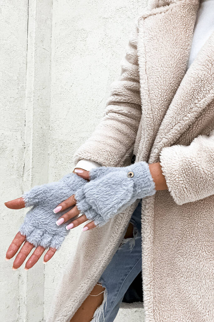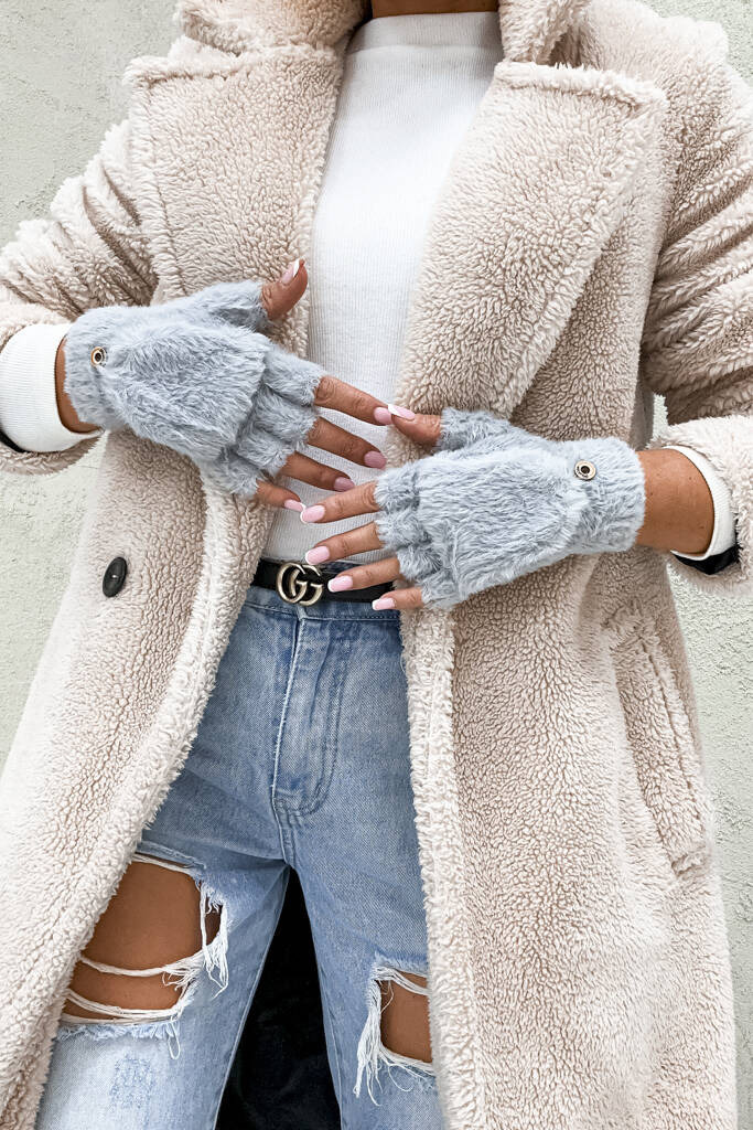 RĘKAWICZKI PIĘCIOPLACZASTE Z KLAPKA- SZARE