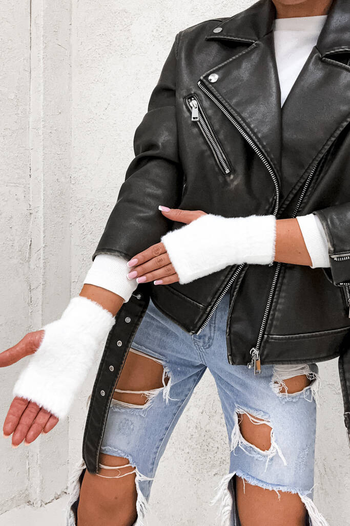 FUTRZANE RĘKAWICZKI BEZ PALCÓW- BIAŁE