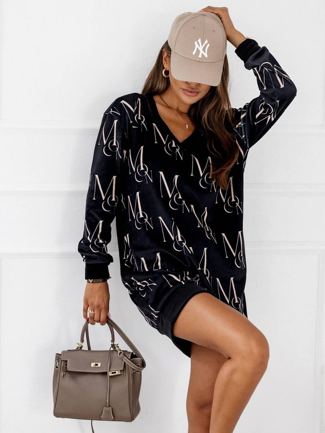 WELUROWA SUKIENKA Z NAPISAMI- CZARNA