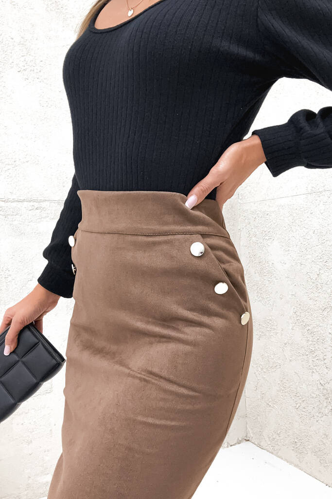 ZAWSZOWA SPÓDNICA MIDI Z OZDOBNYMI GUZIKAMI- BRĄZOWA