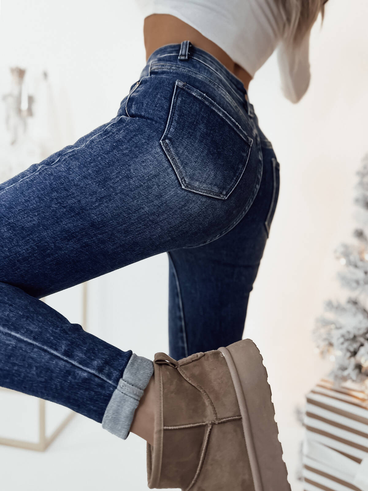 SPODNIE JEANSOWE SKINNY Z WYSOKIM STANEM- GRANATOWE