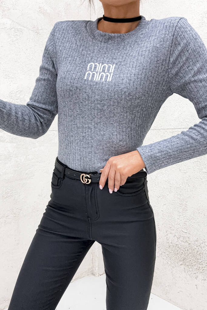 PRĄŻKOWANA BLUZKA Z WYSZYWANYM NAPISEM- SZARA